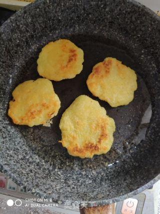 6. 煎制:待土豆饼底部煎至金黄色,翻面继续煎至另一面也煎至金黄色。这个过程大约需要3-5分钟。